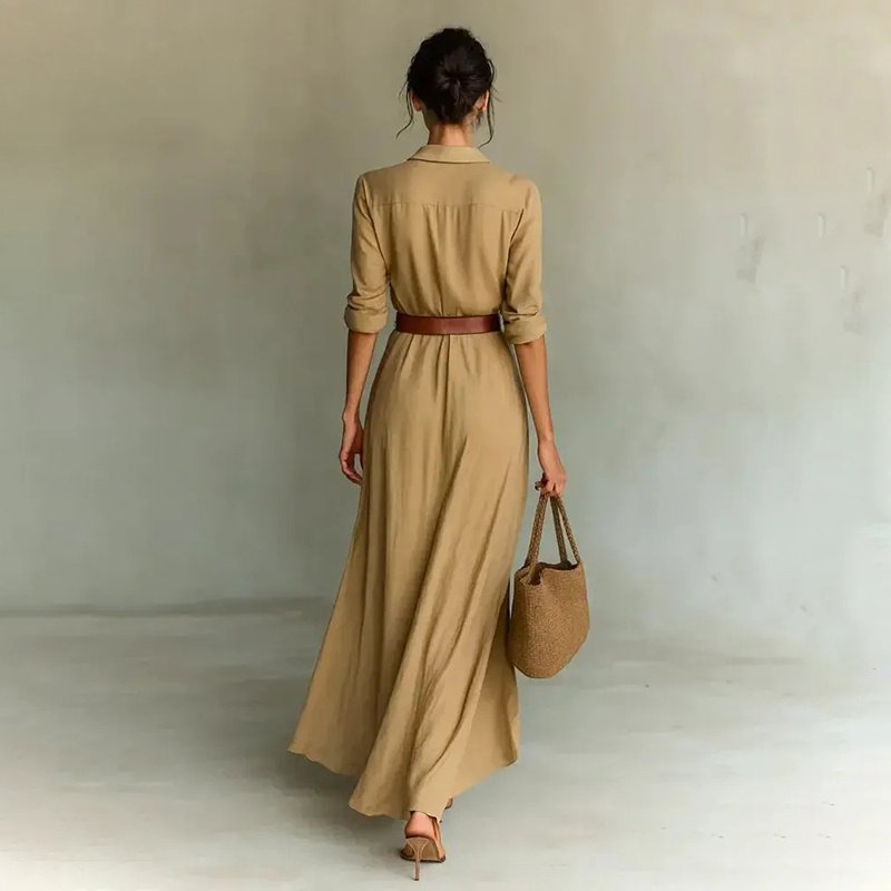 Crafted from a soft fabric, this elegant dress is your perfect companion for the office, a casual weekend, or a special lunch. The long sleeves and maxi length make it ideal for transitional weather, offering both coverage and effortless style. From professional chic to relaxed sophistication, this is the one dress that effortlessly transitions through your day.