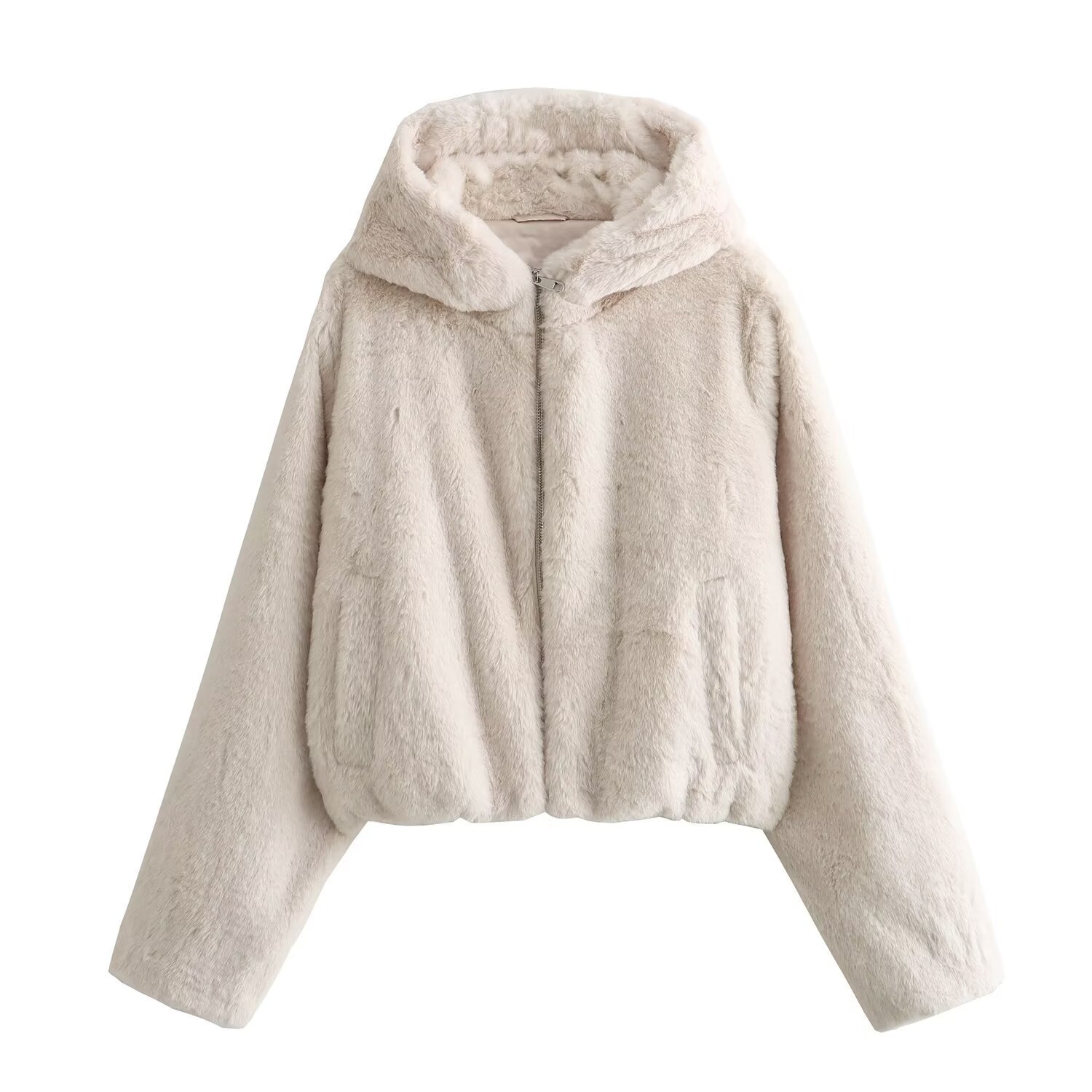 Color: 1093 Beige plush jacket, 1093 Black plush jacket