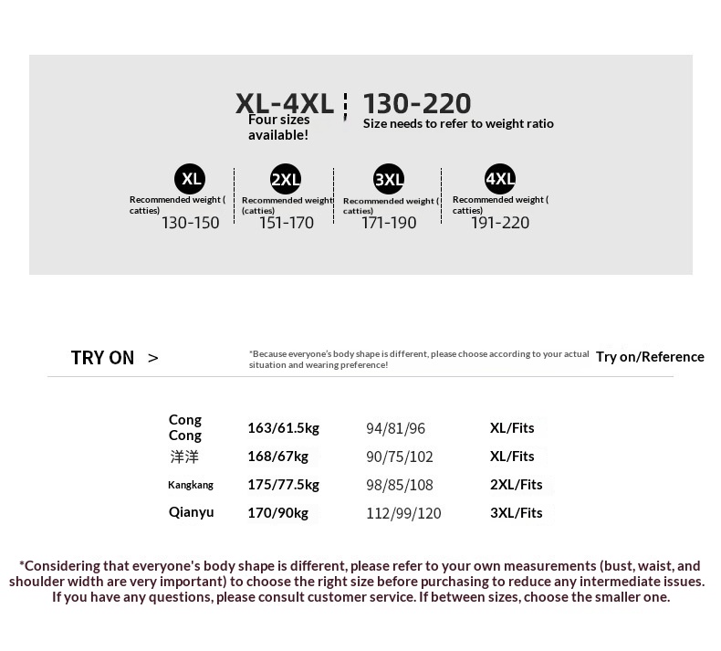 Sizes: XL, 2XL, 3XL, 4XL